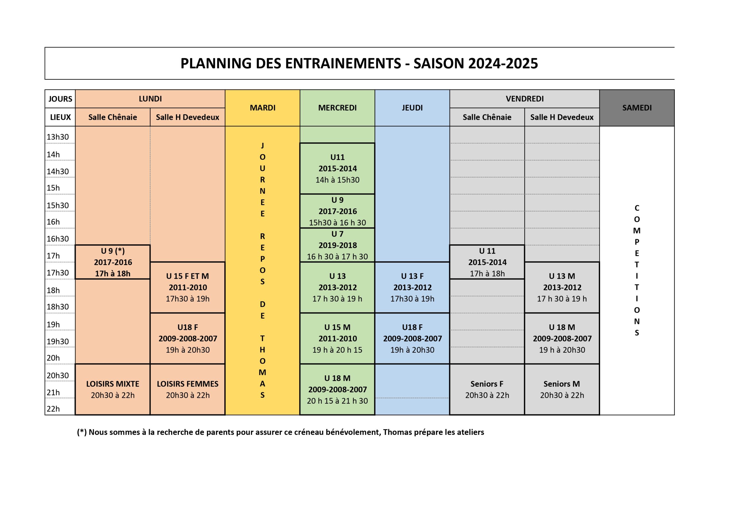 Ce planning est régulièrement mis à jour pour refléter les ajustements en cours d’année (vacances scolaires, événements, etc.).